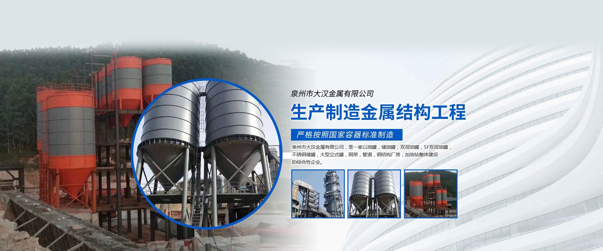 泉州市大漢金屬有限公司,是一家以油罐、儲油罐、雙層油罐、SF雙層油罐、不銹鋼儲罐、大型立式罐、網(wǎng)架、管道、鋼結(jié)構(gòu)廠房、加油站整體建設的綜合性企業(yè)。本公司以技術人員、施工經(jīng)驗豐富的工程隊、自動化設備、擁有鋼結(jié)構(gòu)建筑、螺栓球網(wǎng)架設計安裝技術力量,嚴格按照國家容器標準制造,是一家產(chǎn)品開發(fā)并生產(chǎn)各種壓力容器和制造金屬結(jié)構(gòu)工程,化工石油工程安裝的大型企業(yè)。近多年來,以質(zhì)量穩(wěn)定、客戶至上、信譽為本,以科技求發(fā)展,贏得廣大客戶支持與信賴。